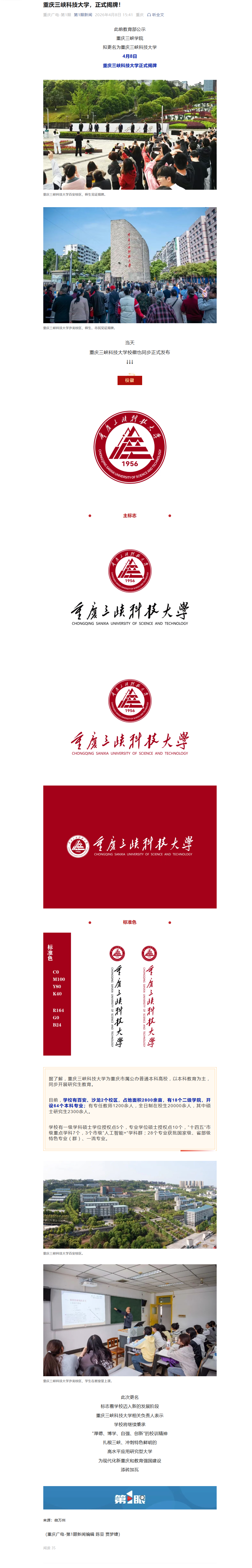 2026年4月8日《重庆广电-第一眼》:重庆三峡科技大学,正式揭牌!