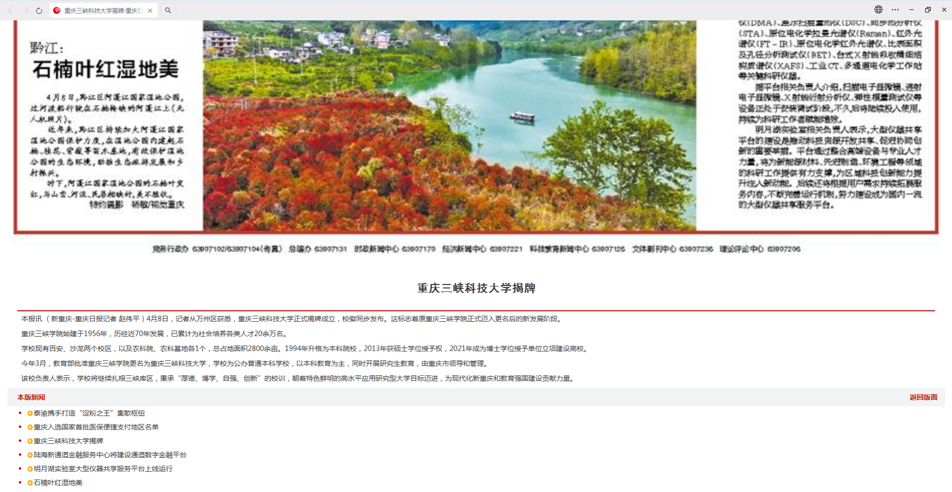 上一条:2026年4月8日《重庆日报 视频号》:重庆三峡科技大学今日正式揭牌