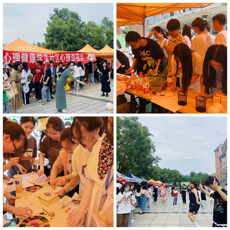 开幕式后,心理游园会拉开帷幕。此次游园会包含了形式多样的心理健康活动,园内下设“情绪纾解区”“知识学习区”“人际获得区”“美好驻存区”四个特色活动区域,“我绘我心”创意指纹画、“缺一不可”寝室团体趣味套圈、“牵动你的心”书签DIY、“展露爱笑的我”拍照打卡、“生生不息 与你相遇”心理知识竞答等活动精彩纷呈,共吸引了1000余名老师同学到场游玩体验。