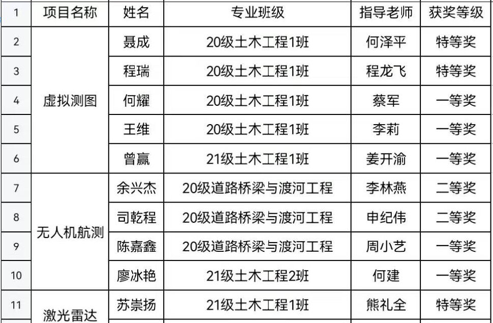 近日,2023年全国大学生测绘学科创新创业智能大赛结果揭晓。开元官网土木工程学院学子喜获10项奖项的好成绩。其中,虚拟仿真数字测图比赛特等奖2项、一等奖3项,机载激光雷达虚拟仿真比赛特等奖1项,无人机航测虚拟仿真比赛一等奖2项、二等奖2项。