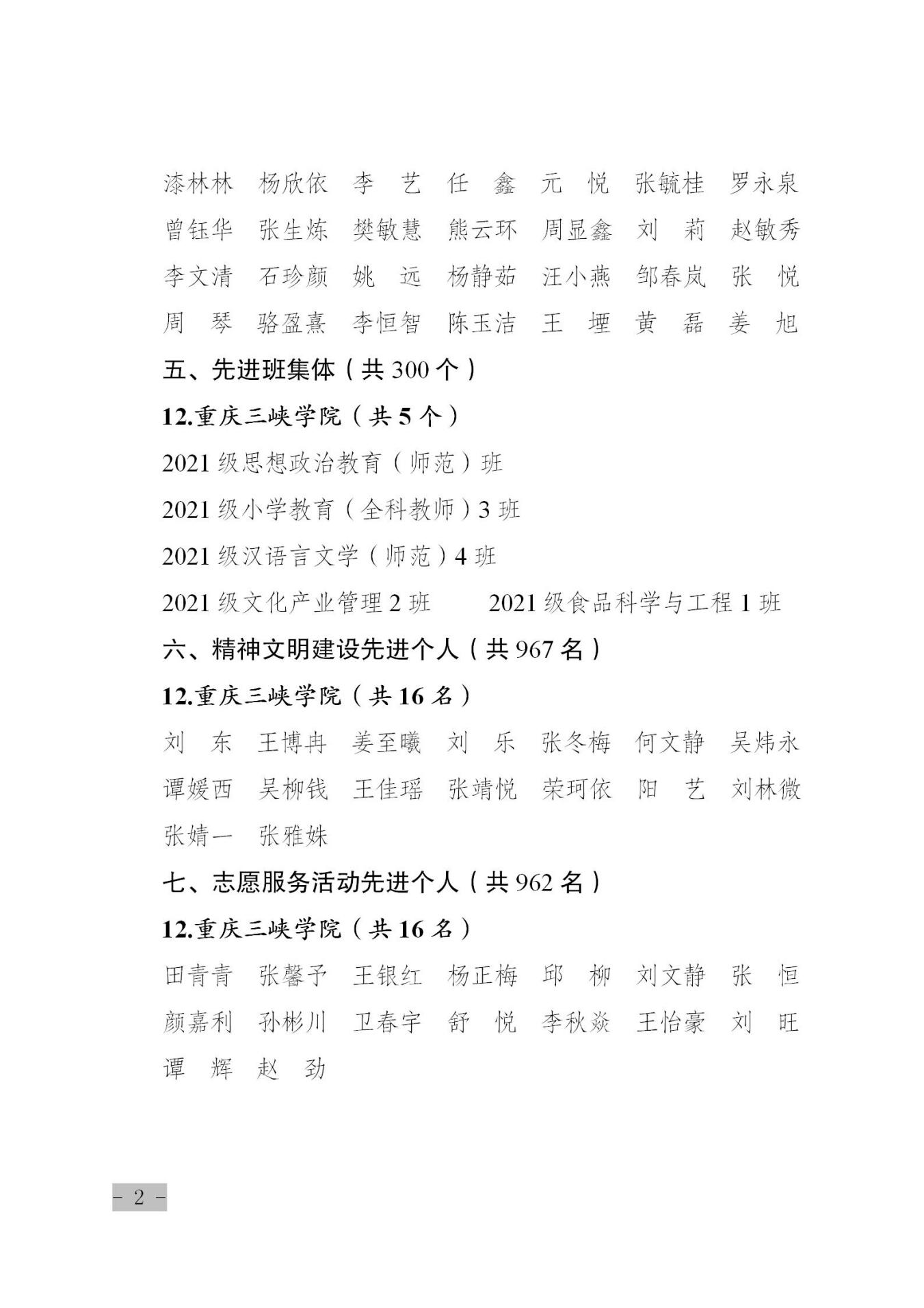 文学院秦志颖等21名同学获“三好学生”称号;美术学院宋柄玫等10名同学获“优秀学生干部”称号;外国语学院徐路勤等7名同学获“优秀毕业研究生”称号;生物与食品工程学院张毓桂等49名同学获“优秀本科毕业生”称号。马克思主义学院2021级思想政治教育(师范)班等5个班级被评为“先进班集体”;财经学院荣珂依等72名同学获各类“先进个人”称号。