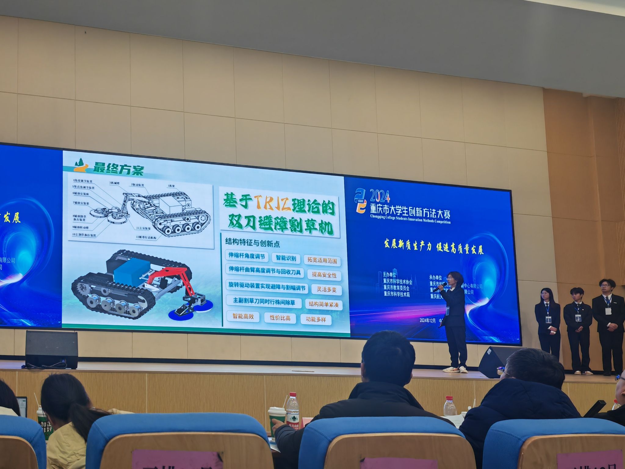 本次大赛由重庆市科学技术协会、重庆市教育委员会、重庆市科学技术局共同主办,旨在深入贯彻落实党的二十届三中全会精神,发挥创新方法在推动科技创新方面的重要作用,引导大学生运用创新方法进行创新。大赛共收到602项作品,经专家线上初赛评审,选出228项作品入围决赛。经决赛激烈角逐,最终评选出特等奖8个,一等奖28个,二等奖70个,三等奖106个。