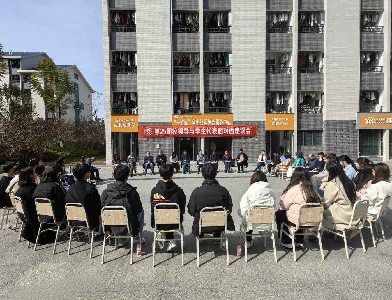 3月20日,校领导与学生代表面对面座谈会在蓝雾苑学生社区小广场顺利举行。学校党委常委、副校长尹立孟出席座谈会并讲话,学校各职能部门负责人,各二级学院学生代表参加。