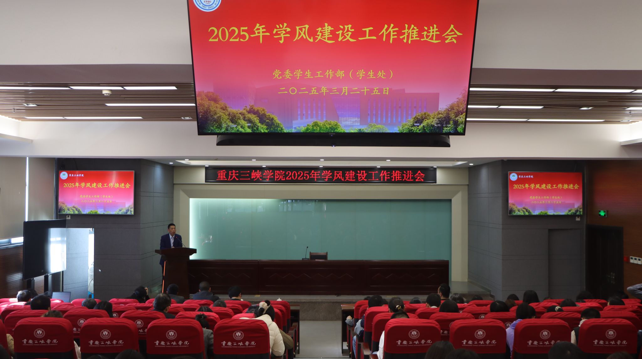 会上,教务处副处长方伟鉴介绍了教务处推进学风建设的思考与实践;教学质量监控与评估处副处长吴艳秋结合督导巡教,分享了教风学风双向联动、协同推进的思路和建议;学生处副处长代小菊分析了前期调研情况,布置学风建设活动;保卫处处长陈登祥通报了有关信息。