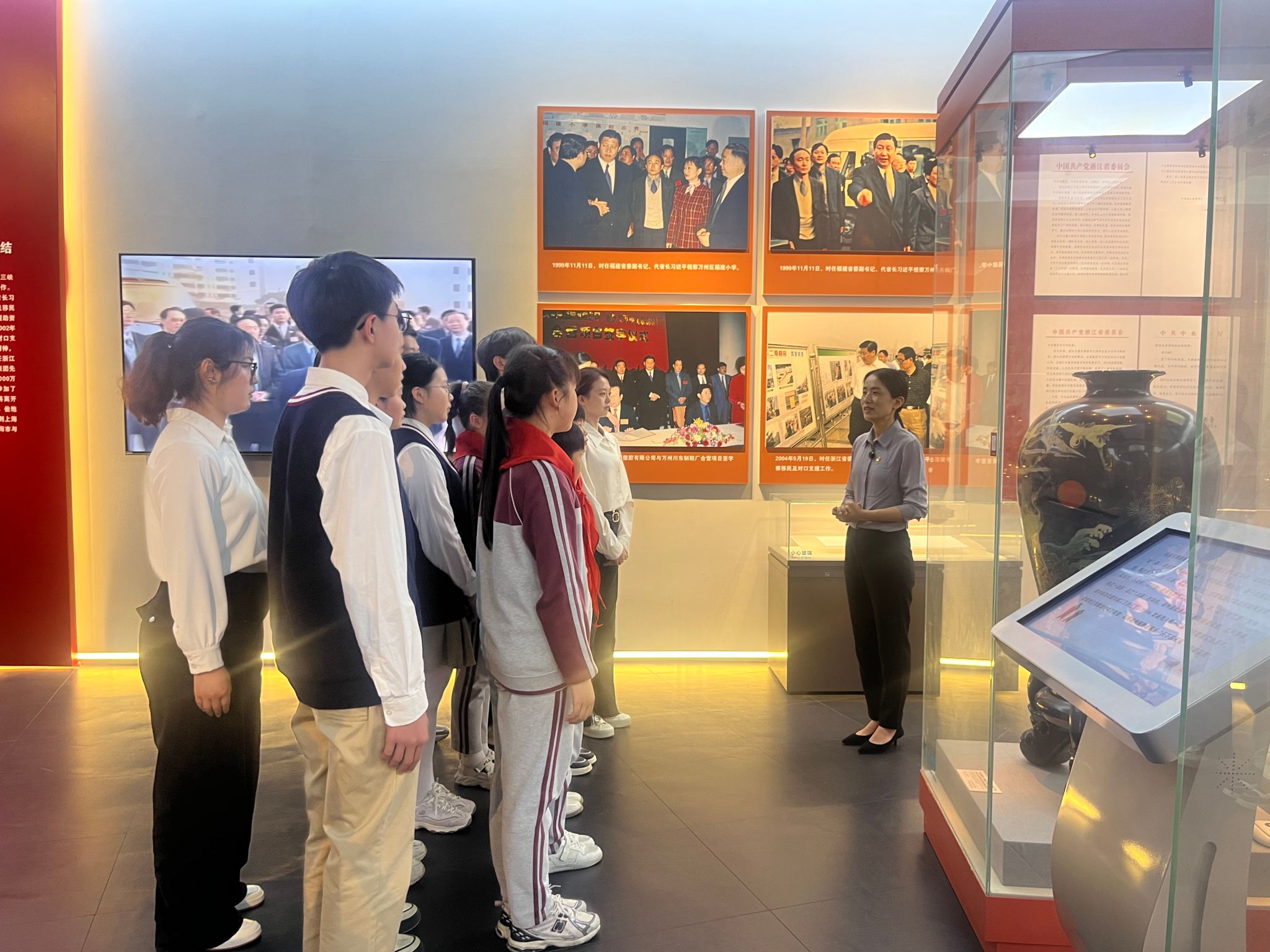 为了更好地带来沉浸式的互动体验,此次思政课还将课堂延伸到了纪念馆的各个角落。现场设置了小组讨论环节,引导学生以多种形式表达自己对社会主义制度优势的理解。