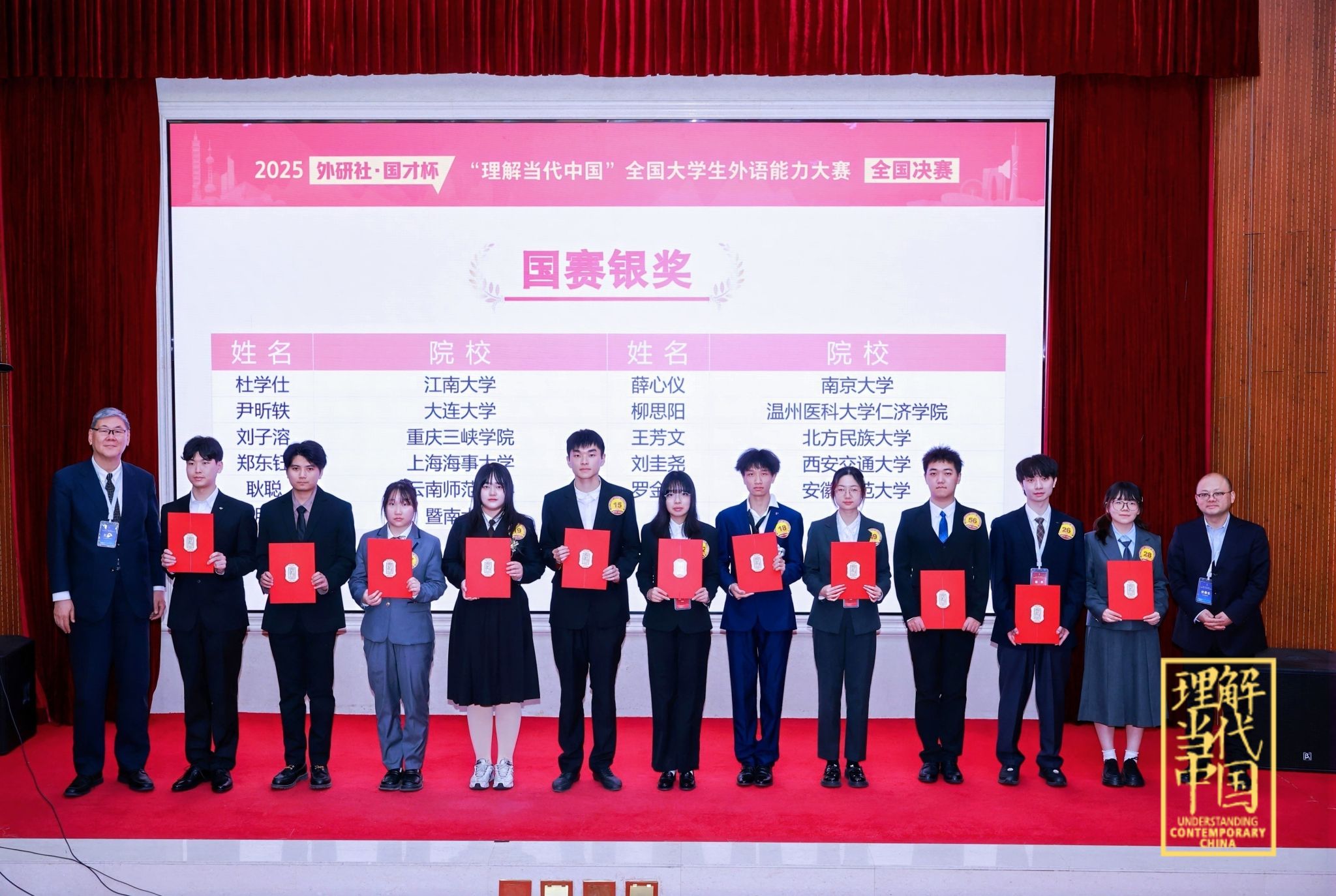 在日语组全国总决赛中,日语专业2023级刘子溶同学凭借扎实的语言功底和出色的现场发挥,从全国众多选手中脱颖而出,荣获全国总决赛银奖。同时,隆敏、杨娜与数学与统计学院孙滢同学也在省赛中荣获铜奖。