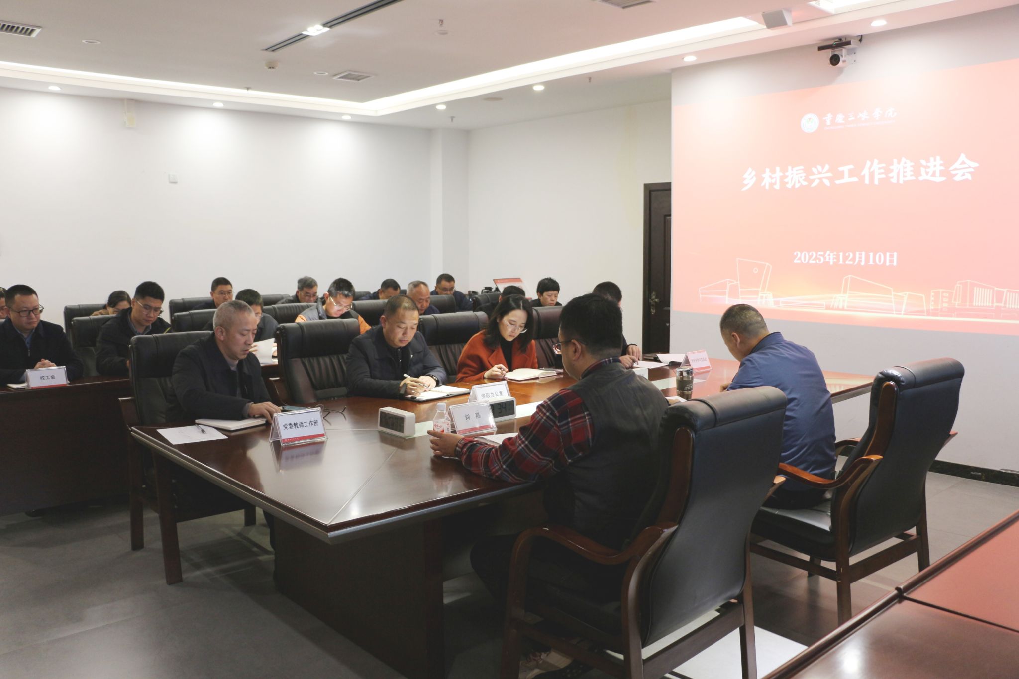 会上,对外合作与交流处汇报2025年乡村振兴帮扶工作总体情况;各驻村第一书记、驻乡工作队队员分别汇报驻村工作开展情况;与会部门及二级学院负责人作交流发言。